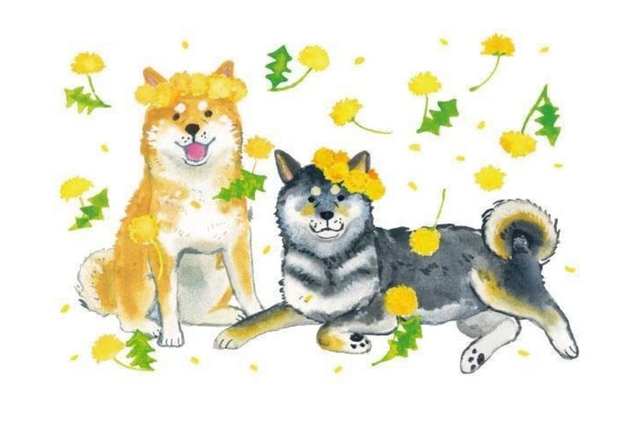 村田夏佳 春柄ポストカード しばいぬと春 タンポポ