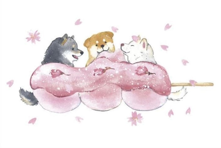 村田夏佳 春柄ポストカード しばいぬと春 桜団子